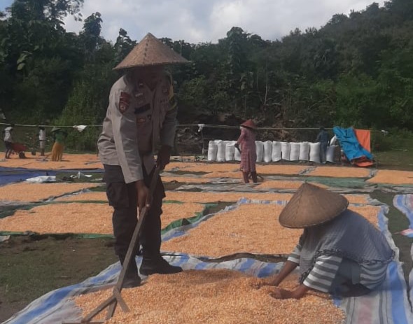 Hal tersebut terlihat pada Jumat (23/5), saat Bhabinkamtibmas Kelurahan Nungga, Polsek Rasanae Timur, Aipda Herman, turun langsung membantu warga binaannya dalam proses penjemuran jagung di Kelurahan Nungga, Kecamatan Rasanae Timur, Kota Bima.