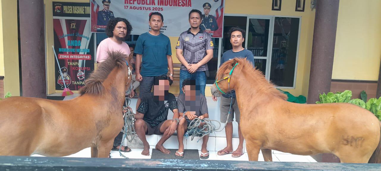 Kota Bima, NTB (19 Oktober 2025) – Misteri hilangnya dua ekor kuda di wilayah hukum Polsek Rasana’e Timur Polres Bima Kota akhirnya terungkap. Berkat kerja keras dan kerja terukur Tim Opsnal Polsek Rastim yang dipimpin Kanit Reskrim Ipda Imanuddin, S.H., dua pria yang diduga sebagai pelaku pencurian berhasil dibekuk.