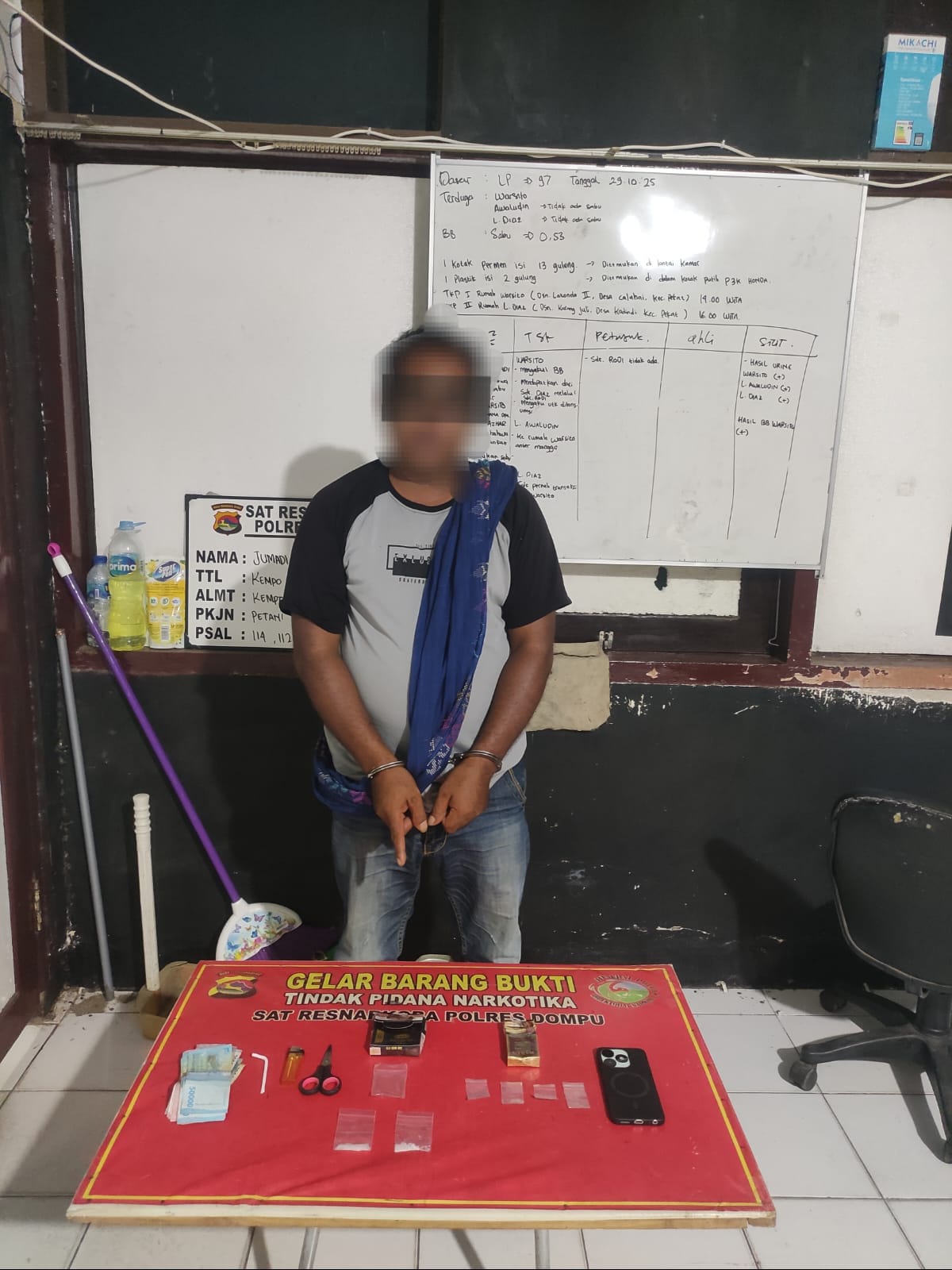 Penangkapan ini dilakukan berdasarkan informasi masyarakat yang melaporkan adanya aktivitas mencurigakan di rumah terduga. Menindaklanjuti laporan tersebut, Kasatresnarkoba Polres Dompu IPTU Rahmadun Siswadi, S.H. memerintahkan KBO Satresnarkoba IPDA Sumaharto bersama Tim Opsnal untuk melakukan penyelidikan di lokasi yang dimaksud.