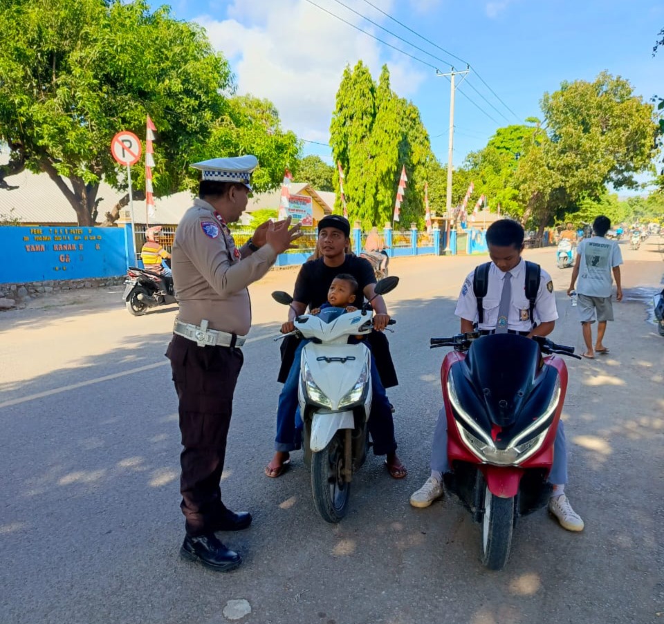 Bima, NTB (17 November 2025) – Unit Lalu Lintas Polsek Sape melaksanakan kegiatan Strong Poin sekaligus memberikan imbauan dan sosialisasi Operasi Zebra Rinjani 2025 kepada para pengendara. Kegiatan berlangsung pada Senin, 17 November 2025, pukul 07.00 Wita di Jalan Lintas Pelabuhan Laut Sape, Kabupaten Bima.