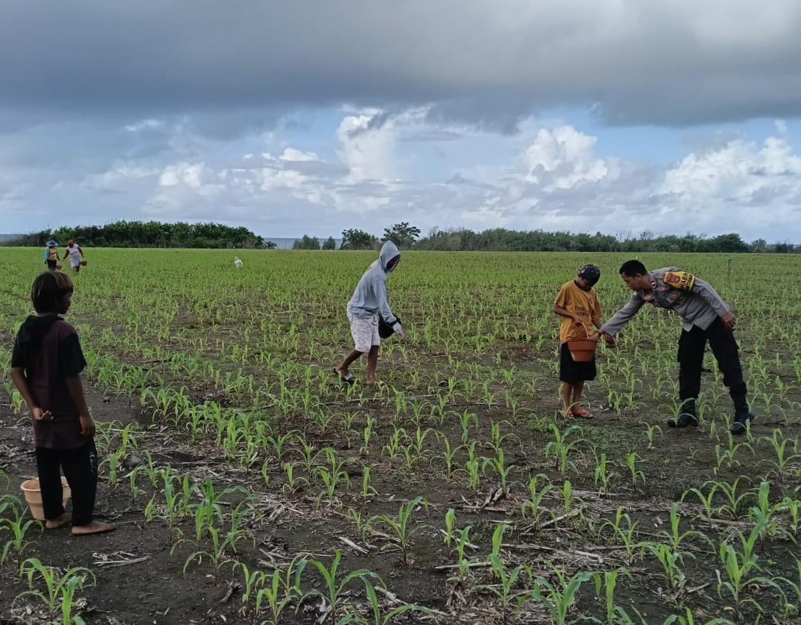 Dalam mendukung Program Ketahanan Pangan Nasional menuju Indonesia Emas 2045, Bhabinkamtibmas Desa Hu’u Polsek Hu’u Aipda M. Husnin melaksanakan kegiatan pendampingan dan pemantauan lahan pertanian milik warga di Dusun Nangadoro, Desa Hu’u, Kecamatan Hu’u, pada Senin (8/12/2025) pukul 09.10 Wita.
