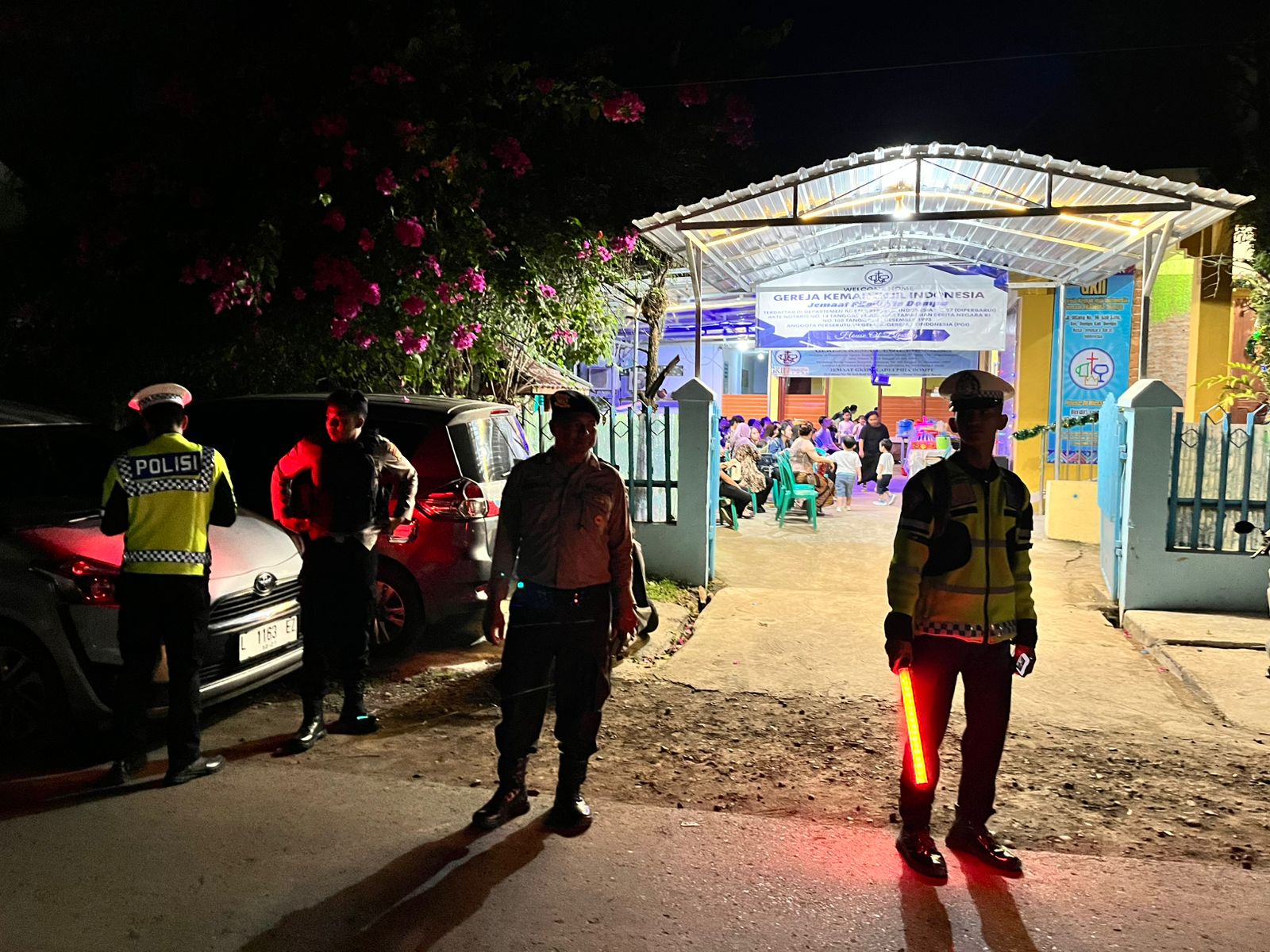 Dalam rangka menjaga keamanan dan kenyamanan umat Kristiani dalam melaksanakan ibadah Perayaan Hari Natal Tahun 2025, Polres Dompu melaksanakan pengamanan kegiatan peribadatan di Gereja GKII Fila Delfia, Kelurahan Bali, Kecamatan Dompu, Kabupaten Dompu, pada Rabu (17/12/2025) malam.