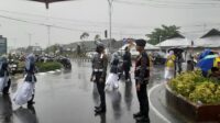 Meski Diguyur Hujan, Personel Polres Sumbawa Barat tetap Profesional amankan Jalannya Kegiatan.